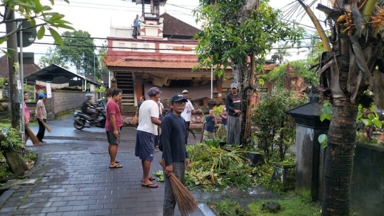 FORUM Keadilan Bali – Menindaklanjuti Surat Edaran Nomor 660/427/DLHK Tanggal 15 Februari 2023 tentang Kerja Bakti Serentak menjelang peringatan HUT ke-235 Kota Denpasar, Desa Peguyangan Kaja bersama warga dinas dan warga banjar adat melaksanakan kerja bakti serentak di sebelas lingkungan/banjar di wilayah Desa Peguyangan Kaja, Minggu (19/2).