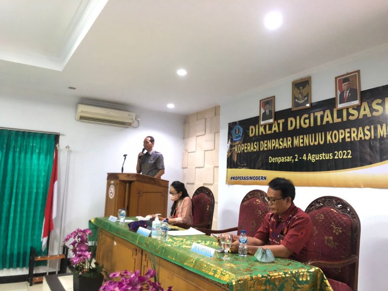Pernyataan itu disampaikan Kepala Dinas Koperasi dan UMKM Kota Denpasar, Dr. I Dewa Made Agung, S.E., M.Si., didampingi Kepala Bidang Bina Usaha Sriwirani Widowati, S.TP., M.Si., di sela-sela membuka Diklat Digitalisasi Koperasi di Wisma Agama Lumintang Denpasar, Rabu (3/8/2022).