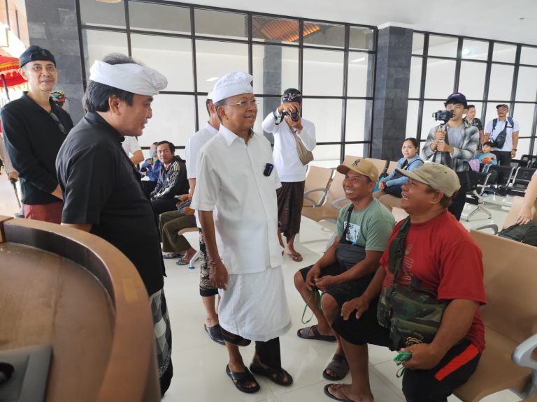 Setelah meninjau pasar, Koster melanjutkan perjalanan menuju pelabuhan tradisional Sampalan (pelabuhan logistik Kapal Roro). Infrastruktur penting di Kecamatan Nusa Penida ini menjadi prioritas Koster-Giri.