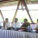 Koster berdialog dengan pengelola Pelabuhan Sampalan. Para petugas memaparkan sejumlah data terbaru sejak pelabuhan ini beroperasi tiga tahun lalu.