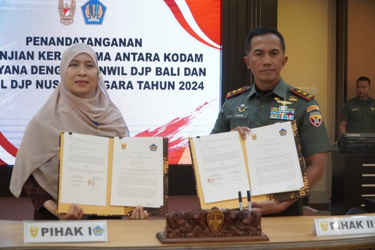 FORUMKEADILANBli.com – Kantor Wilayah Direktorat Jenderal Pajak Bali menandatangani perjanjian kerjasama dengan Komando Daerah Militer (Kodam) IX/Udayana di Ruang Airlangga, Gedung Utama KODAM IX/Udayana dilaksanakan, Selasa (16/7).