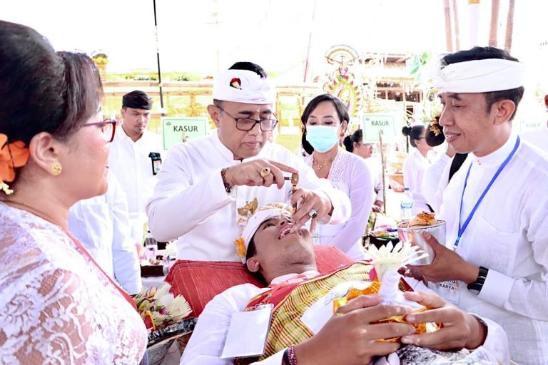 FORUMKEADILANBali.com – Walikota Denpasar I Gusti Ngurah Jaya Negara ngayah nyangging serangkaian Karya Atma Wedana dan Mapandes Kinambulan digelar Desa Adat Sesetan, Denpasar Selatan diikuti ratusan peserta dilaksanakan di Pemelisan Desa Adat Sesetan, Kamis (18/7).