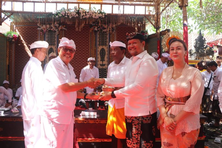 MANGUPURA, FORUMKEADILANBali.com – Wakil Bupati Badung Bagus Alit Sucipta didampingi Nyonya Yunita Alit Sucipta menghadiri Karya Dewa Yadnya Ngelinggihang, Padudusan Alit di Merajan Gede Pratisentana Penyarikan Dalem Kedonganan, Desa Adat Kedonganan, Kuta, Rabu (24/9/2025).