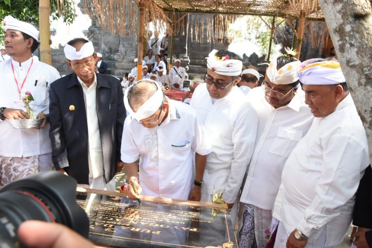 Walikota Denpasar IGN Jaya Negara mengikuti ritual mendem pedagingan di palinggih Ida Danghyang Siddhimantra dan mendampingi Gubernur Wayan Koster mendem pedagingan di Padmasana utama pura. Usai upacara dilaksanakan penandatanganan prasasti oleh Gubernur Bali Wayan Koster bersama Pengrajeg Karya IGN Jaya Negara.
