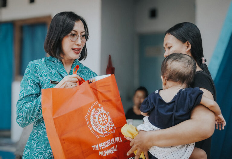 FORUM Keadilan Bali – Guna mengawal program pemerintah entaskan angka stunting, Penjabat Ketua Tim Penggerak PKK Provinsi Bali Ny. drg. Ida Mahendra Jaya didampingi Ketua TP PKK Kabupaten Klungkung Ny. Ayu Suwirta dan instansi terkait menyambangi sekaligus menyerahkan bantuan kepada 50 balita berpotensi stunting serangkaian ”Berkunjung dan Berbagi” di Balai Budaya Kabupaten Klungkung, Rabu (18/10).