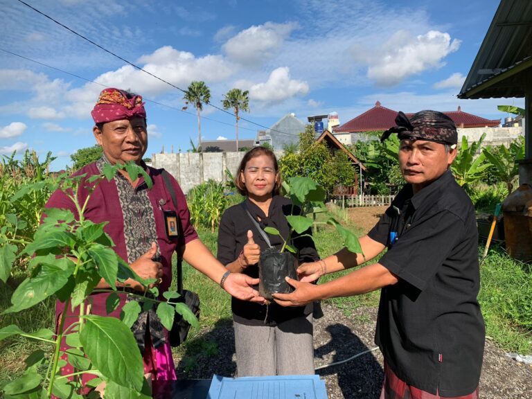 FORUM Keadilan Bali – Menekan laju angka inflasi di Kota Denpasar, Kelurahan Penatih membagikan bibit tanaman sayuran kepada seluruh anggota PKK di Kelurahan Penatih di Kebun Sarwa Prani Kelurahan Penatih, Denpasar Utara, Kamis (6/4).