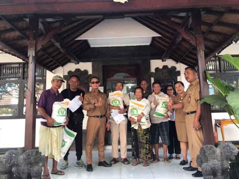 FORUM Keadilan Bali – Lurah Sanur I.B Raka Jisnu menyalurkan bantuan beras kepada ratusan keluarga penerima manfaat Program Keluarga Harapan (PKH) di Kantur Kelurahan Sanur, Senin (25/9).