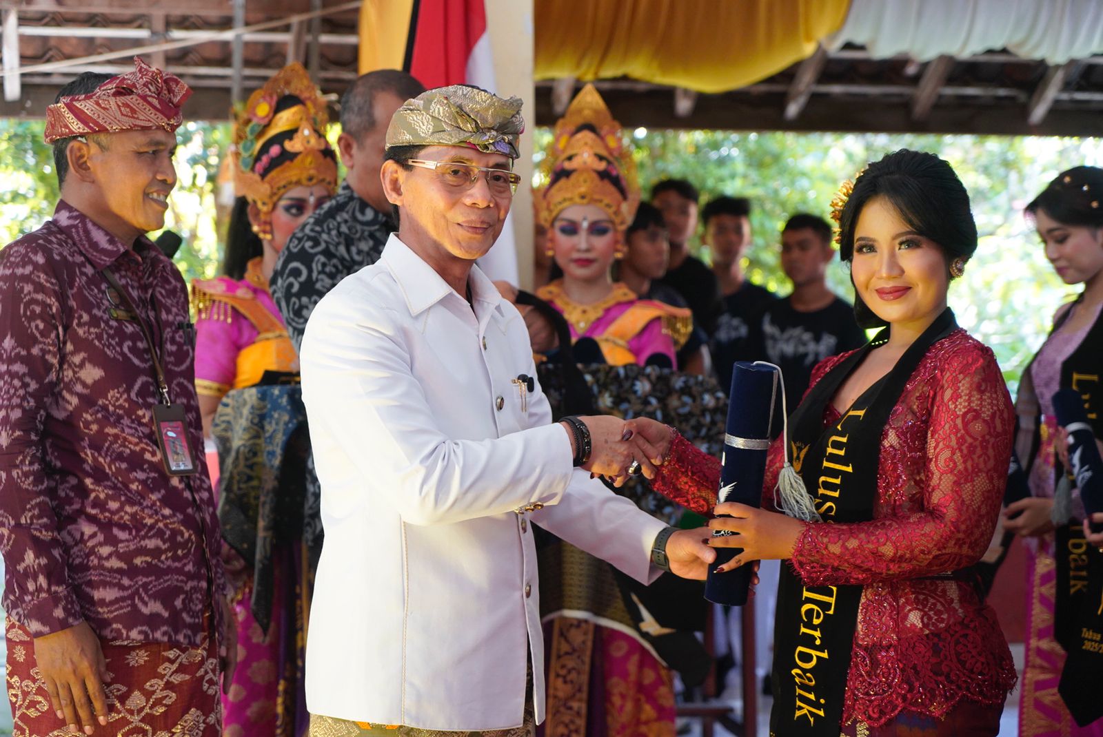 Bupati Satria menitipkan tiga pesan utama sebagai bekal menghadapi dunia yang berubah cepat, yakni pertama, jangan berhenti belajar, ijazah hanyalah tiket awal, dunia nyata akan menguji melalui pengalaman dan keberanian untuk terus bertanya. Kedua, jaga integritas, di era penuh distraksi, karakter adalah mata uang paling berharga, dan sulit dipalsukan. Ketiga, tetap dekat dengan akar, di mana pun melangkah, jangan lupa asal-usul. Klungkung selalu terbuka bagi generasi muda yang ingin pulang dan mengabdi. Jangan takut salah, karena setiap langkah mundur seringkali adalah ancang-ancang untuk melompat lebih jauh. ”Saya yakin, kalian adalah generasi yang akan membawa nama baik almamater ini dan menjadi motor penggerak kemajuan Kabupaten Klungkung di masa depan,” tegasnya.