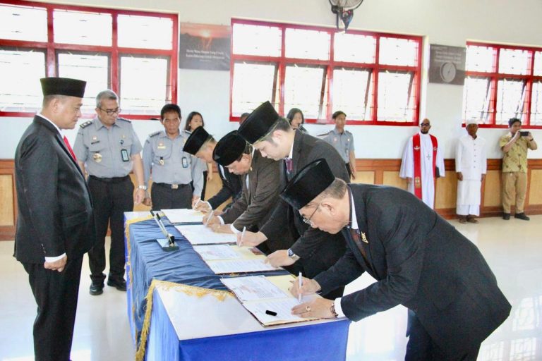 FORUM Keadilan Bali – Kepala Kantor Wilayah Kementerian Hukum dan HAM Bali, Romi Yudianto secara resmi melantik dan mengambil sumpah 10 orang Majelis Pengawas Daerah (MPD) Notaris terdiri dari 9 orang MPD Notaris Kabupaten Karangasem dan satu MPD Notaris Kabupaten Buleleng periode 2024-2027, di Aula Lembaga Pemasyarakatan Kelas IIB Karangasem, Selasa (20/2).