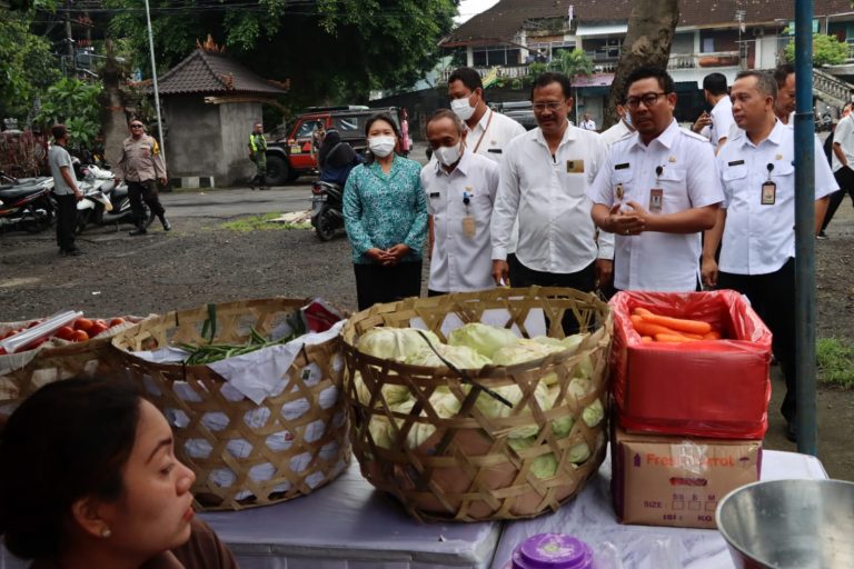 Sementara Sekda Kota Denpasar IB Alit Wiradana meninjau pelaksanaan operasi pasar di Desa Sumerta Kelod Kecamatan Denpasar Timur. Masyarakat antusias memanfaatkan program operasi pasar tersebut.