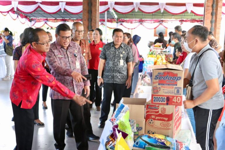 FORUM Keadilan Bali – Sekretaris Daerah (Sekda) Kota Denpasar, Ida Bagus Alit Wiradana meninjau bazar pangan digelar Dinas Perikanan dan Ketahanan Pangan di Wantilan Pura Dalam Sudha, Desa Sidakarya, Denpasar Selatan, Selasa, (12/9).