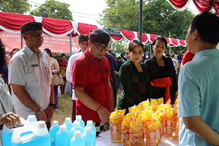 FORUM Keadilan Bali – Gebyar pasar murah serangkaian HUT ke-235 Kota Denpasar digelar Pemerintah Kota Denpasar melalui Dinas Perindustrian dan Perdagangan di Kelurahan Sesetan, Kamis (16/2).