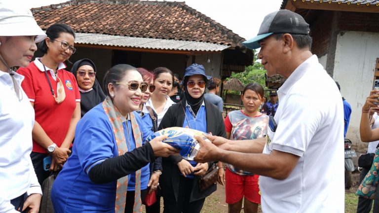 FORUM Keadilan Bali – Ketua Badan Kerjasama Organisasi Wanita (BKOW) Provinsi Bali Ny.Tjokorda Putri Hariyani Ardhana Sukawati (Ny.Tjok Ace) bersama para pengurus BKOW Provinsi Bali dan para pengurus Wanita Katolik Republik Indonesia DPD Bali-NTB turun menyerahkan bantuan ke rumah warga terdampak banjir di Desa Sangkaragung, Jembrana, Jumat (21/10).