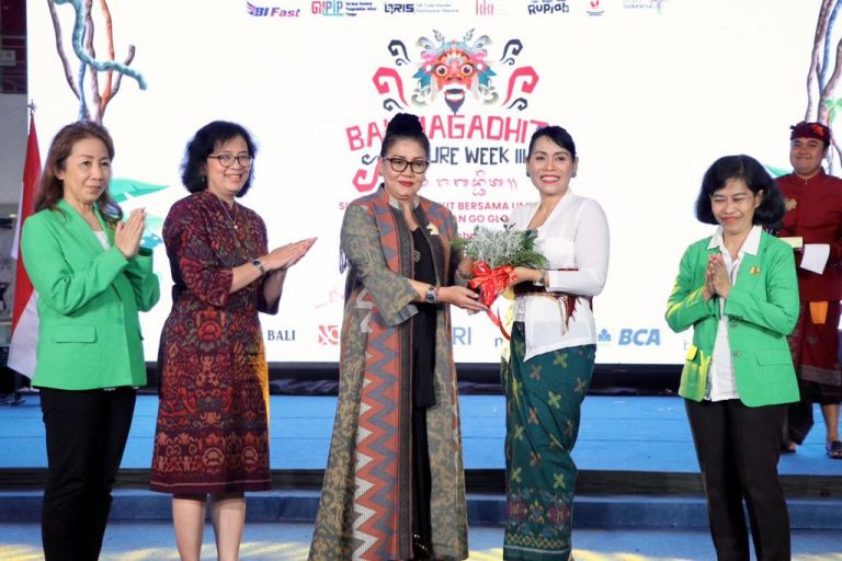 FORUM Keadilan Bali – Ketua Dekranasda Provinsi Bali, Ny. Putri Koster membuka lomba merangkai bunga Kasna di Discovery Shopping Mall Kartika Plaza Kuta, Minggu, (6/11/2022).