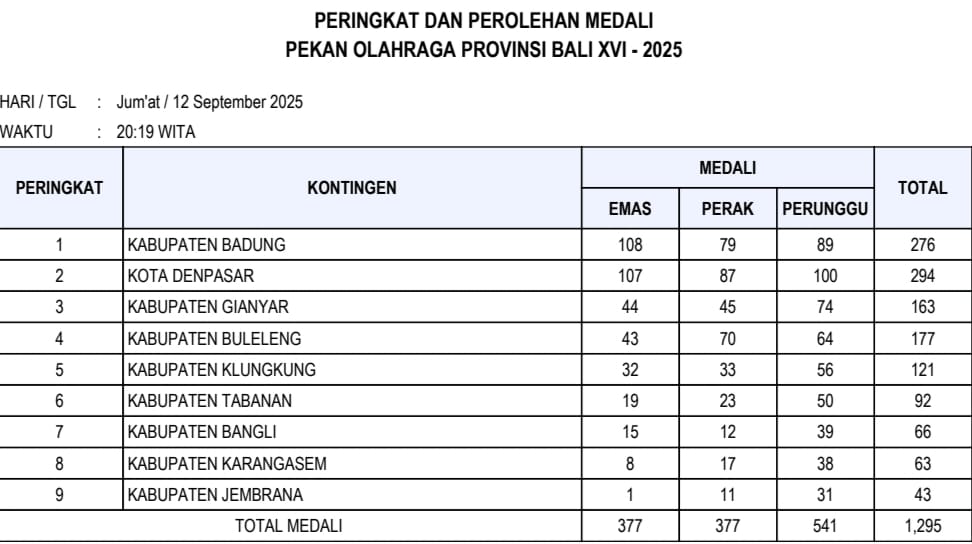”Kami merasa dirugikan dengan update klasemen perolehan medali tidak akurat setiap hari. Contohnya, cabang olahraga (cabor) Panahan Denpasar merebut 3 medali emas, tapi yang di update hanya 1 medali emas,’’ kata Yudi Atmika saat jumpa pers dengan awak media di Kantor KONI Denpasar, Jumat (12/9/2025).
