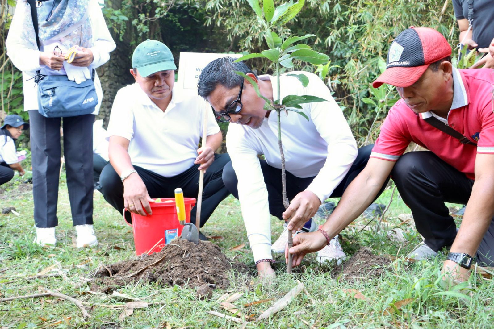 DENPASAR, FORUMKEADILANBali.com – Wakil Walikota Denpasar, I Kadek Agus Arya Wibawa mendampingi Menteri Lingkungan Hidup (LH) Hanif Faisol Nurofiq dan Gubernur Bali Wayan Koster melaksanakan penanaman pohon di bantaran aliran Sungai Ayung tepatnya di Taman Kehati Kesiman Kertalangu, Denpasar Timur, Jumat (26/9/2025).