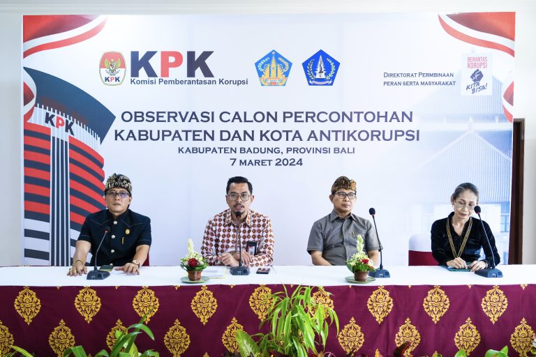 ”Capaian MCP Kabupaten Badung dari tahun ke tahun selalu optimal, beberapa kali mendapatkan penghargaan atas capaian MCP oleh KPK RI. Kami telah memperkuat inspektorat untuk dapat melaksanakan pengawasan yang optimal, pengembangan badung whistle blowing system, pengendalian gratifikasi, kepatuhan LHKPN,” kata Bupati Nyoman Giri Prasta pada acara Observasi Program Percontohan Kabupaten Antikorupsi di Kabupaten Badung di Ruang Kriya Gosana Puspem Badung, Kamis (7/3).