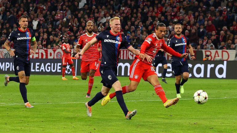 Bayern hanya butuh tujuh menit untuk membuka keunggulan. Sodoran Jamal Musiala diterima Sane lalu dia melakukan aksi individu sebelum melepaskan tembakan kaki kiri akurat dari luar kotak penalti yang bersarang di sudut atas gawang Viktoria Plzen.