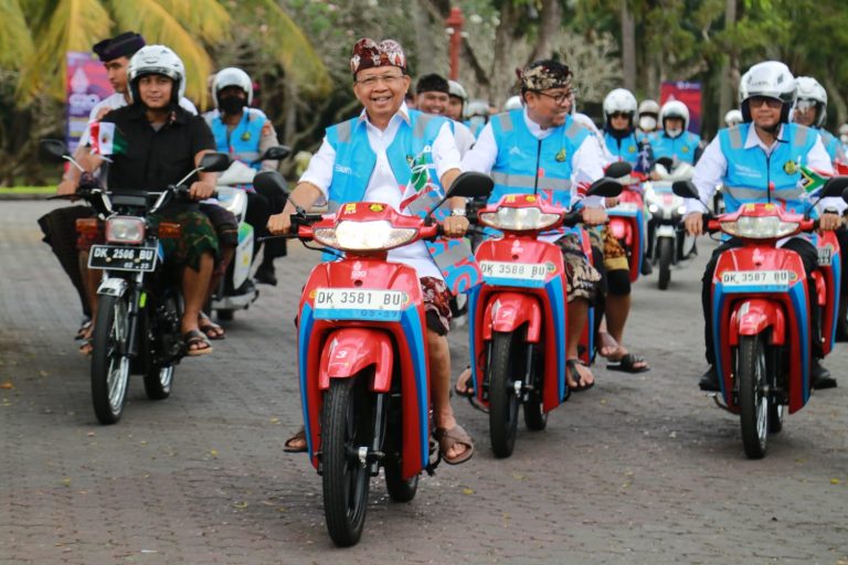 FORUM Keadilan Bali – Menteri Energi Sumber Daya Mineral (ESDM) Arifin Tasrif memberi Gubernur Bali Wayan Koster penghargaan canangkan Bali sebagai provinsi bebas emisi dari konvensi sepeda motor BBM ke listrik.