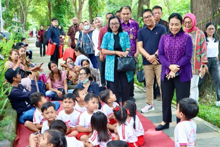 FORUM Keadilan Bali – Menteri Pemberdayaan Perempuan dan Perlindungan Anak (PPPA) RI, Bintang Puspayoga mengunjungi Perpustakaan Kontainer di kawasan Taman Janggan diterima Wakil Walikota Denpasar I Kadek Agus Arya Wibawa, Jumat (8/12).