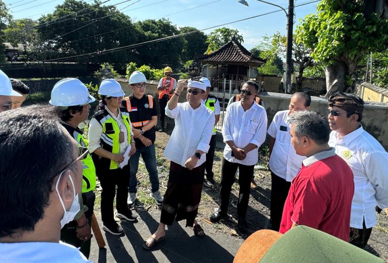 Walikota Jaya Negara didampingi Kadis PUPR Kota Denpasar A.A Ngurah Bagus Airawata, Kabid Sumber Daya Air DPUPR Ida Ayu Trisuci, Perbekel Desa Pemogan I Made Suwirya, dan Bendesa Adat Pemogan A.A Ketut Arya Adnyana.
