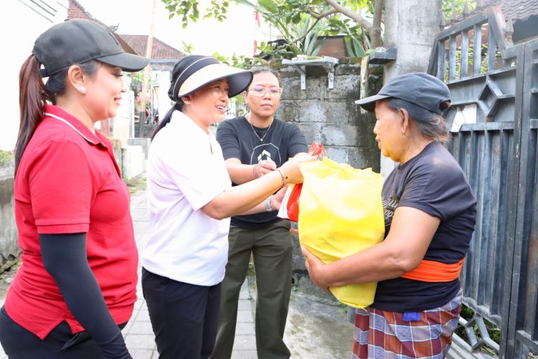 DENPASAR, FORUMKEADILANBali.com – Ketua TP PKK Kota Denpasar, Ny. Sagung Antari Jaya Negara bersama Ketua GOW Kota Denpasar Ny. Ayu Kristi Arya Wibawa mendatangi 50 kediaman warga terdampak banjir memberikan bantuan tersebar di tujuh banjar di Kelurahan Peguyangan, Jumat (19/9/2025).