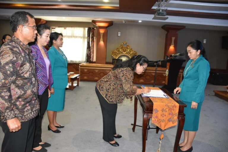 FORUM Keadilan Bali – Ketua Tim Penggerak (TP) PKK Kota Denpasar Ny. Sagung Antari Jaya Negara melantik Ketua TP PKK Kecamatan Denpasar Timur Ny. Karang Sejani Upawana di Graha Sewaka Dharma Lumintang, Denpasar.