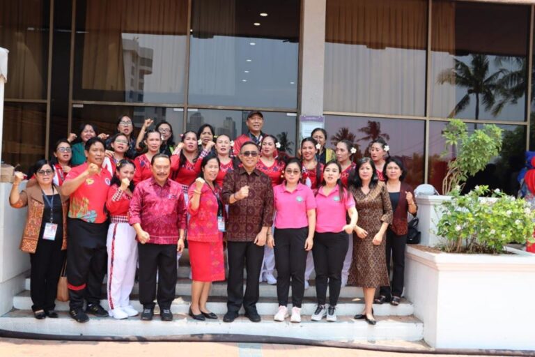 FORUM Keadilan Bali – Ny. Antari Jaya Negara memimpin kontingen Kota Denpasar berlaga pada Pekan Olah Raga dan Seni (Porseni) Ikatan Guru Taman Kanak Kanak Indonesia (IGTKI)- PGRI, di Mercure Hotel Ancol, Jakarta, Kamis (12/10).