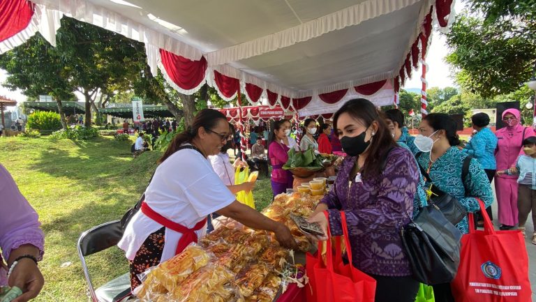 FORUM Keadilan Bali – Pasar Rakyat bertajuk “Berbelanja dan Berbagi” yang diselenggarakan TP PKK Provinsi Bali kembali digelar. Kali ini, Kabupaten Buleleng didapuk menjadi tuan rumah penyelenggaran pasar rakyat, Rabu (10/8).