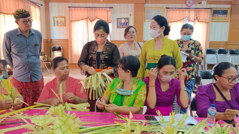 FORUM Keadilan Bali – Meningkatkan pemahaman makna upakara bagi masyarakat terutama wanita Hindu tentang filosofi dan makna terkandung dalam sarana upakara, Wanita Hindu Dharma Denpasar (WHDI) Kota Denpasar menggelar pelatihan membuat banten otonan di Kantor Desa Sidakarya dibuka Ketua WHDI Kota Denpasar Ny. Sagung Antari Jaya Negara Sabtu (24/9).