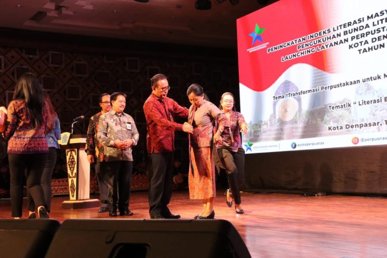 Kepala Perpusnas RI Muhamad Syarif Bando menyampaikan apresiasi terhadap budaya literasi di Kota Denpasar. Berkesempatan hadir di Kota Denpasar dan bertatap muka pengukuhan Bunda Literasi bersinergi dalam kegiatan budaya literasi di Gedung Dharma Negara Alaya sebagai gedung dengan arsitektur khas Bali. Selain perpaduan modern menjadi gedung kreatif dan budaya dalam peningkatan inovasi dan kreativitas insan muda Denpasar. ”Saya apresiasi langkah Wali Kota Jaya Negara dan Wakil Wali Kota Arya Wibawa membawa kemajuan Kota Denpasar serta kemajuan kebudayaan sebagai simbol yang akan kita pakai dimana Denpasar sebagai kota wisata dunia,” ujarnya.