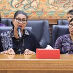 FORUM Keadilan Bali – Ketua Tim Penggerak Pemberdayaan dan Kesejahteraan Keluarga (TP PKK) Kabupaten Badung Nyonya Seniasih Giri Prasta menerima kunjungan kerja (kunja) Ketua Tim Penggerak Pemberdayaan dan Kesejahteraan Keluarga Kota Bekasi Wiwiek Hargono bersama rombongan di Sekretariat TP. PKK Gedung Balai Budaya Giri Nata Mandala, Selasa (9/5).