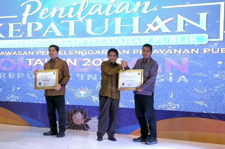 FORUM Keadilan Bali - Pemprov Bali meraih predikat Penilaian Kepatuhan Penyelenggaraan Pelayanan Publik peringkat III dari Ombudsman RI. Penghargaan diterima Inspektur Provinsi Bali I Wayan Sugiada mewakili Pj. Gubernur Bali S.M.