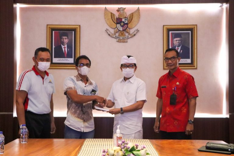 FORUM Keadian Bali - Sekretaris Daerah Kabupaten Badung, I Wayan Adi Arnawa selaku Ketua Dewan Pengurus KORPRI Kabupaten Badung menyerahkan santunan dana kematian kepada ahli waris Aparatur Sipil Negara (ASN)