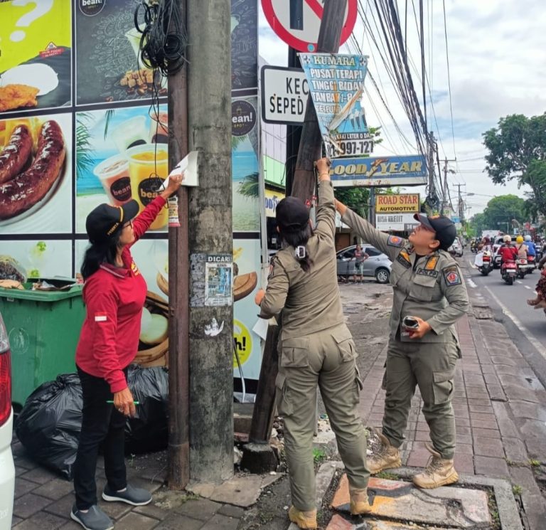 DENPASAR, FORUMKEADILANBali.com - Satuan Polisi Pamong Praja (Satpol PP) Kota Denpasar melalui Bidang KUKM memberangus baliho, spanduk, banner, umbul-umbul dan pamflet dipasang tidak sesuai ketentuan di fasilitas umum, Selasa (2/12/2025).