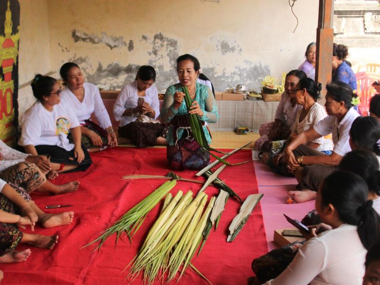 DENPASAR, FORUMKEADILANBali.com - Pemerintah Kota Denpasar melalui Wanita Hindu Dharma Indonesia (WHDI) Kota Denpasar kembali menggelar pelatihan pembuatan Banten Otonan Ayaban Tumpeng Pitu di Wantilan Pura Dalem Danu Taman Suci,