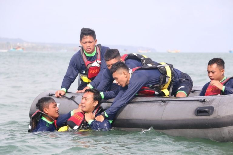 FORUM Keadilan Bali – Unit Airport Rescue and Fire Fighting (ARFF) PT Angkasa Pura I Bandara Internasional I Gusti Ngurah Rai Bali menggelar pelatihan Simulasi Water Rescue Bersama Badan Pencarian dan Pertolongan (Basarnas) Provinsi Bali, dilaksanakan di Pantai Kelan, Kecamatan Tuban, Badung, Bali, Sabtu (25/6).