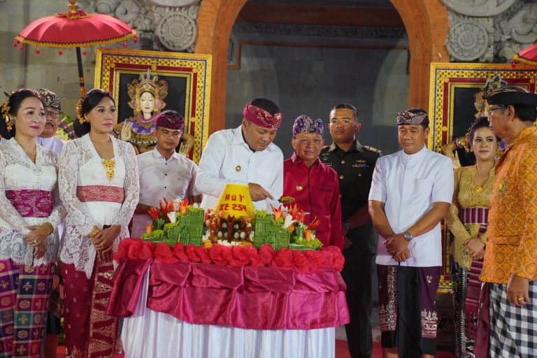GIANYAR, FORUMKEADILANBli.com – Pemerintah Kabupaten Gianyar menggelar Upacara Peringatan Hari Ulang Tahun (HUT) Kota Gianyar ke-254 di Alun-alun Kota Gianyar, Sabtu (19/4/2025) sebagai bentuk penghormatan terhadap sejarah panjang Kota Gianyar serta komitmen melanjutkan pembangunan daerah berlandaskan budaya dan kearifan lokal.