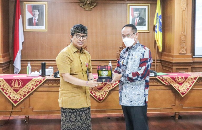 FORUM Keadilan Bali – Bupati Badung diwakili Sekretaris Daerah Badung I Wayan Adi Arnawa menyambut kunjungan kerja (kunker) Wakil Walikota Samarinda Rusmadi Wongso beserta Pimpinan Forkopimda Kota Samarinda terkait sinergitas tugas-tugas Kepala Daerah dan Forum Koordinasi Pimpinan Daerah, di Ruang Kriya Gosana Puspem Badung, Kamis (28/7).