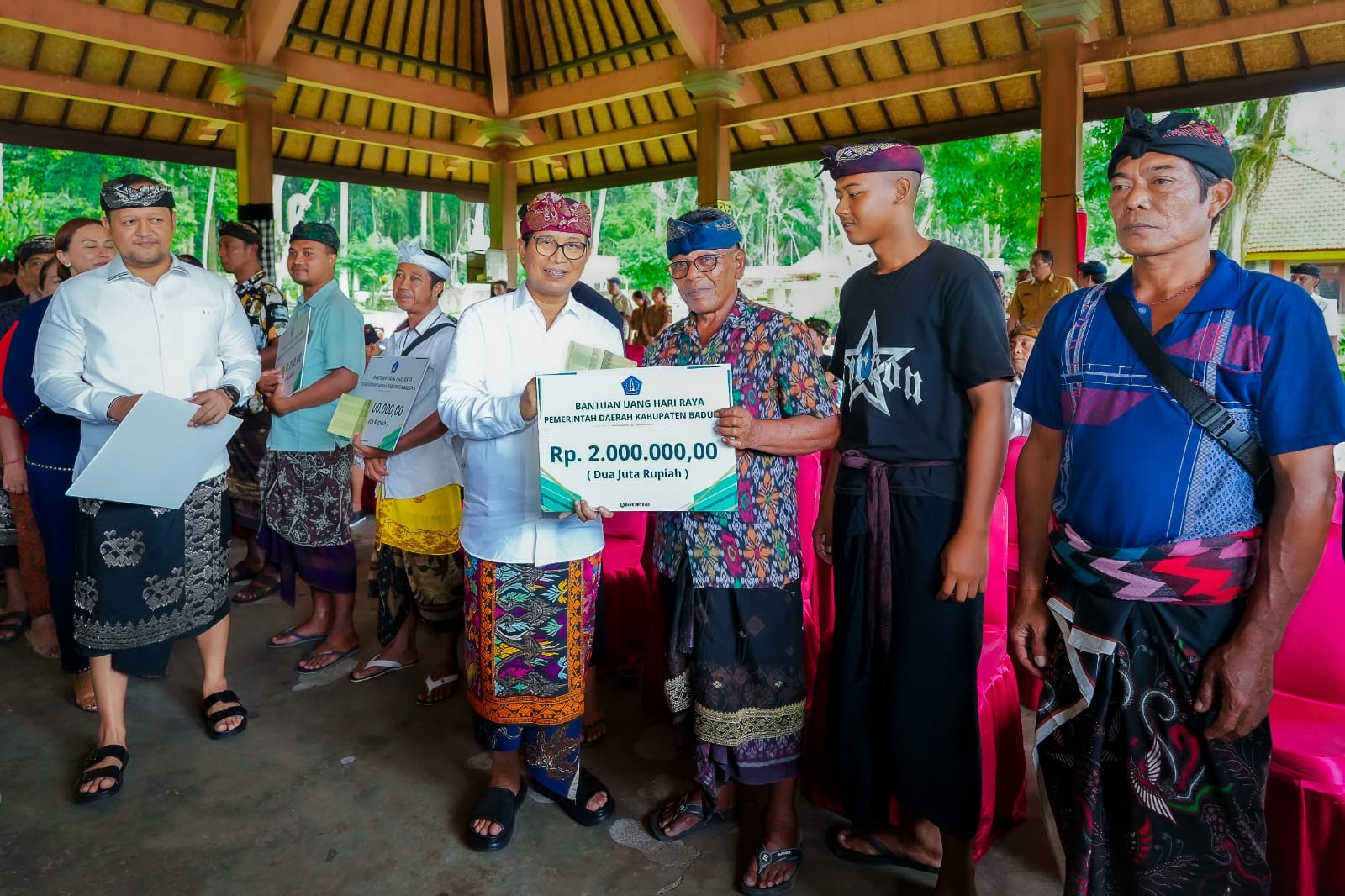 Bupati Badung I Wayan Adi Arnawa bersama Wakil Bupati Badung Bagus Alit Sucipta kembali menyalurkan bantuan sosial (bansos) berupa uang tunai Rp2 juta per Kepala Keluarga (KK) kepada masyarakat beragama Hindu yang berpenghasilan maksimal Rp5 juta per bulan menjelang Hari Raya Galungan dan Kuningan November 2025 mendatang.