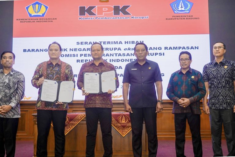MANGUPURA, FORUMKEDILANBali.com – Pemkab Badung menerima hibah Barang Milik Negara (BMN) berupa eks barang rampasan dari Komisi Pemberantasan Korupsi Republik Indonesia (KPK RI). Hibah berupa tanah barang sitaan KPK RI ini terletak di Kelurahan Kerobokan Kelod, Kecamatan Kuta Utara, terdiri dari enam bidang tanah dengan total nilai Rp26 miliar lebih. Serah terima hibah BMN dirangkaikan sosialisasi Anti Korupsi di Ruang Kertha Gosana, Puspem Badung, Selasa (15/7/2025).