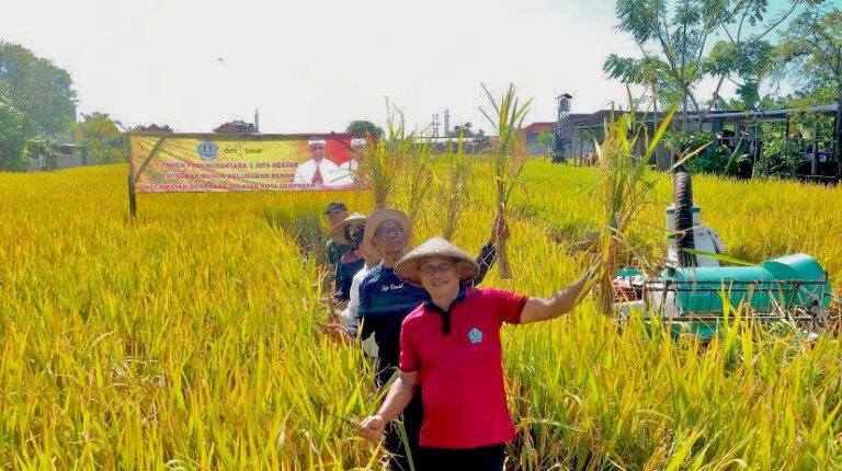 FORUM Keadilan Bali – Pemerintah Kota Denpasar melakukan panen padi di lahan Subak Renon, Denpasar Selatan. Hal ini sebagai langkah Pemkot Denpasar mendukung gerakan panen padi Nusantara satu juta hektar yang digelar serentak di seluruh Indonesia, Kamis (9/3) hari ini.