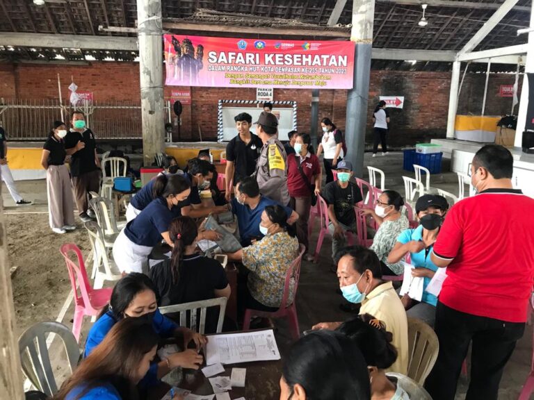 FORUM Keadilan Bali – Menyambut HUT ke-235 Kota Denpasar, Dinas Kesehatan Kota Denpasar bersinergi dengan Rumah Sakit Daerah Wangaya melaksanalan Safari Kesehatan di Wantilan Taman Dukuh Banjar Pulugambang, Kelurahan Peguyangan, Jumat (24/2).