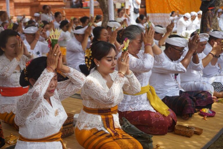 FORUM Keadilan Bali – Jajaran Pemerintah Kota Denpasar melaksanakan bhakti panyineban serangkaian Pujawali di Pura Agung Jagatnatha Denpasar, Rabu (1/11).