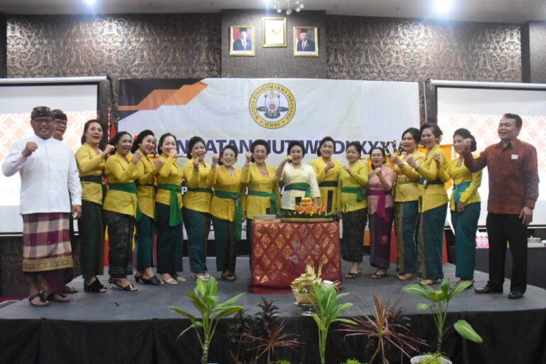 FORUM Keadilan Bali – Sekda Kota Denpasar IB Alit Wiradana bersama Ketua Tim Penggerak PKK Kota Denpasar sekaligus Ketua WHDI Kota Denpasar Ny. Sagung Antari Jaya Negara menghadiri peringatan HUT WHDI XXXV bertajuk ”Perempuan Berdaya Wujudkan Generasi Bebas Stunting, Cerdas dan Tangguh” di Ballroom The Vasini Smart Boutique Hotel, Minggu (26/2).