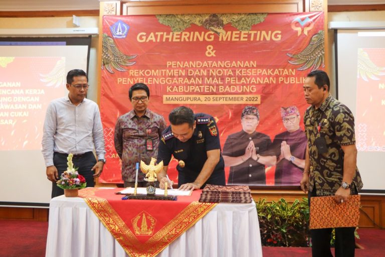 FORUM Keadilan Bali – Sekretaris Daerah (Sekda) I Wayan Adi Arnawa, mewakili Bupati Badung menghadiri acara Gathering Meeting dan Penandatanganan Rekomitmen dan Nota Kesepakatan Rencana Kerja antara Bupati Badung dengan Kantor Pengawasan dan Pelayanan Bea Cukai Tipe Madya Pabean (KPPBC TMP) A Denpasar di Mal Pelayanan Publik Dinas Penanaman Modal dan Pelayanan Terpadu Satu Pintu (DPMPTSP) Kabupaten Badung, Selasa (20/9).