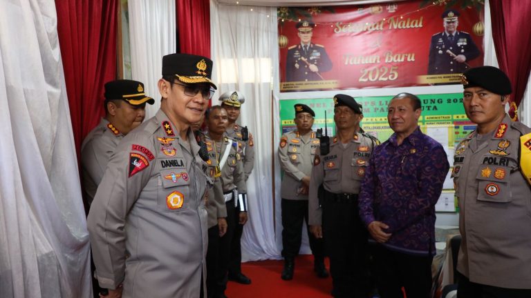 FORUMKEADILANBali.com – Kapolda Bali, Irjen Pol. Daniel Adityajaya, S.H., S.I.K., M.Si., didampingi Wakapolda Bali Brigjen. Pol. I Komang Sandi Arsana, S.I.K., M.H., beserta PJU Polda Bali melaksanakan kunjungan dan pengecekan pelaksanaan Pos Pengamanan Natal dan tahun baru (Nataru) Di Pospam Benoa, Selasa (24/12/2024).