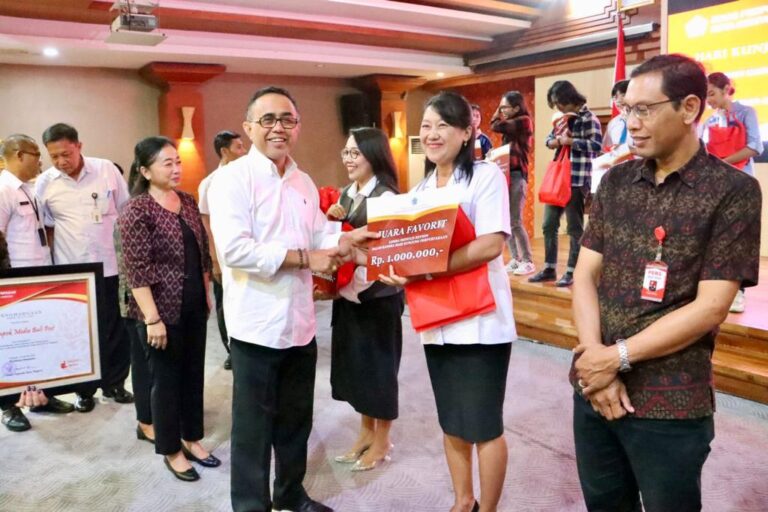 FORUM Keadilan Bali – Walikota Denpasar I Gusti Ngurah Jaya Negara menyerahkan hadiah lomba literasi kepada pemenang desain twibbon dan menulis review serta pemberian penghargaan kepada media/penerbit, penggiat literasi, di Ruang Mahottama Gedung Graha Sewaka Dharma Lumintang, Rabu (18/10).