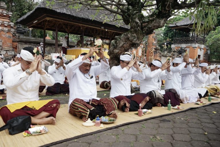 FORUM Keadilan Bali – Pemkot Denpasar menggelar upacara Jagat Kerthi memperingati Pitenget Tumpek Wayang di Pura Agung Jagatnatha Denpasar, Sabtu (1/10).