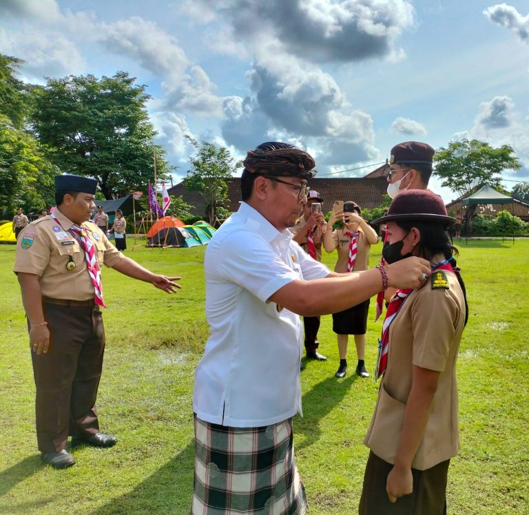 FORUM Keadilan Bali – Wakil Walikota Denpasar yang juga Ketua Kwartir Cabang Gerakan Pramuka Denpasar, I Kadek Agus Arya Wibawa membuka secara resmi Perkemahan Raimuna Gerakan Pramuka Kwartir Cabang Denpasar 2022 dengan membunyikan ketipung di Lapangan Desa Poh Gading Denpasar, Kamis (27/10).
